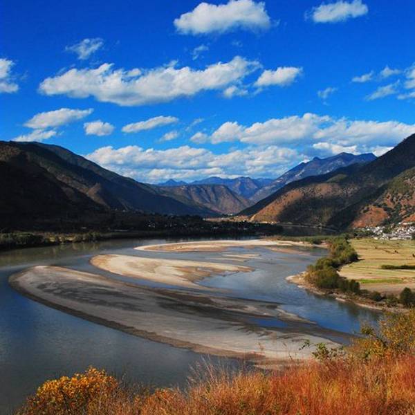 长江第一湾只是个很小的景点,但是如果去对了地方去对了时间还是很美很值得一去的- 写点评之前先要强调一点,我们现在说的这个长江第一湾在石鼓镇,并不是旅行社带去的那个有长江第一湾招牌的地方,就是下图的这个地方,这个观景台号称是长江第一湾的观景台,还要收费十元,但是上去了之后根本看...- 写点评之前先要强调一点,我们现在说的这个长江第一湾在石鼓镇,并不是旅行社带去的那个有长江第一湾招牌的地方,就是下图的这个地方,这个观景台号称是长江第一湾的观景台,还要收费十元,但是上去了之后根本看不到“湾”,完全是旅行社用来忽悠游客的,大家千万不要上当!第一湾全貌,是不是很漂亮?如果有超广角镜头拍出来会更美!左侧的江水,我去的时候是秋天,属于枯水季节,虽然不能漂流,但裸露的河床别有一番不同的美,配上山坡上的红叶,拍出照来美得不得了!右侧的江水,近处的红叶美得炫目,远处湛蓝的天空漂浮着大朵的白云,让人情不自禁地心生高远!回首远望,是一片金黄的梯田和静谧的村庄,景色同样的宜人。看这一排排的屋顶,像是彝族的村庄,真的有去村庄里走一走的冲动。只是不知道这个如世外桃源般的村庄是否欢迎我的突然造访,也真的不愿意打扰这个静谧的村庄。长江第一湾只是个很小的景点,但是如果去对了地方去对了时间还是很美很值得一去的。所以这里要再次强调——真正的第一湾在石鼓镇,秋天去最美!!!! 展开