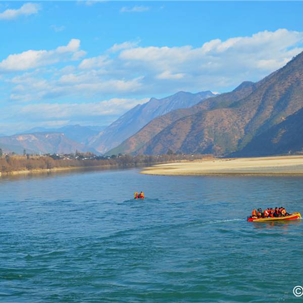 ...团参加老君山黎明景区一日游,从丽江古城开车出来一小时后就到了石鼓镇的长江第一湾,这里是必经之地- 从丽江古城报团参加老君山黎明景区一日游,从丽江古城开车出来一小时后就到了石鼓镇的长江第一湾,这里是必经之地。浩荡的长江上游金沙江由北向南,经过石鼓镇时突然转向东北,在此处拐了一个大大的弯,正因为此...- 从丽江古城报团参加老君山黎明景区一日游,从丽江古城开车出来一小时后就到了石鼓镇的长江第一湾,这里是必经之地。浩荡的长江上游金沙江由北向南,经过石鼓镇时突然转向东北,在此处拐了一个大大的弯,正因为此,长江才得以一路向东流入东海。而云南的三江并流景观由此成为了世界遗产。车停了下来,旁边有一个宽阔的观景平台,正好可以欣赏到大大的一个弯,游客在这里拍拍照,是免费的。早上9:00多钟,阳光亮起还没多久,金沙江水静静的奔流向东。这里也开展漂流业务,从长江第一湾开始一直向下游漂流一段,现在冬天是金沙江的枯水期,江水的水面比较低,在河道中裸露出了不少沙洲,江边上也出现了不少白色细软的沙滩。边漂流边享受冬日暖阳也是一种不错的享受。 展开