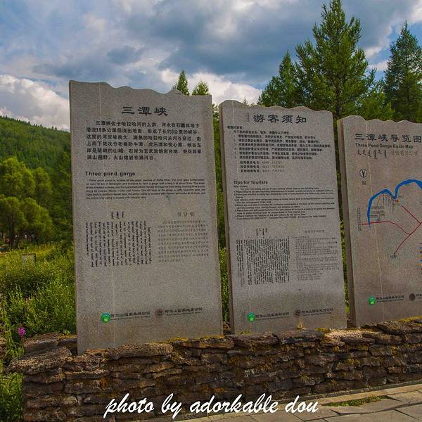 三潭峡顾名思义是由三个潭组成的峡谷,全部修好了木道,弯弯曲曲顺着峡谷走过去需要45分钟左右三潭峡顾名思义是由三个潭组成的峡谷,全部修好了木道,弯弯曲曲顺着峡谷走过去需要45分钟左右。里面白桦树居多,溪流清澈湍急,空气清新,很好的旅行之地。