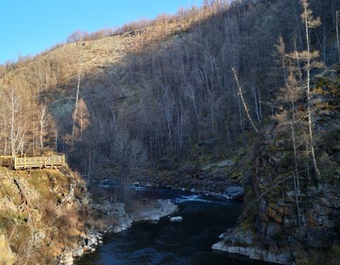 ...河水对面的悬崖陡峭笔直,湍急的河水绕崖而流淌,周围可见漂亮的白桦林,红色的灌木丛和林间的河草滩三潭峡峡谷里有三潭,其三潭分别为卧牛潭、虎 石潭 和悦心潭。两山夹一水,走在木栈道上看河水对面的悬崖陡峭笔直,湍急的河水绕崖而流淌,周围可见漂亮的白桦林,红色的灌木丛和林间的河草滩。三潭峡的入口和出...三潭峡峡谷里有三潭,其三潭分别为卧牛潭、虎 石潭 和悦心潭。两山夹一水,走在木栈道上看河水对面的悬崖陡峭笔直,湍急的河水绕崖而流淌,周围可见漂亮的白桦林,红色的灌木丛和林间的河草滩。三潭峡的入口和出口不在同一个地方。这三潭的河滩上都有很多的奇形怪状的石头,河水清澈见底,一看便心旷神怡,但是我可没看出来石头像牛或者像虎 。路上看见好多喜欢摄影的老法师队伍,注意啦 !放下沉重的装备,支棱好三脚架,将光圈调到F8,ISO 100,快门速度30秒……仅仅是我的内心的独白 ,不论年龄大小大家都在捕捉眼中的风景,你所热爱的就是你的生活。秋天的落叶松松针脱落在木栈道两侧,枯草与落叶像厚厚的绒毯踩上去软软的,还能幸运地看见丛林小松鼠,乌黑的大眼睛拖着毛绒绒的大尾巴在林中上蹿下跳,记得带上好吃的坚果给它们。 展开