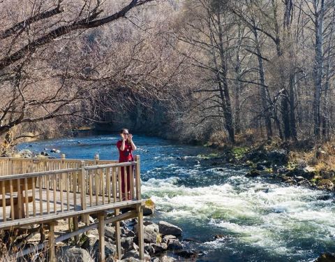 秋季这里略显萧条,逆流而行,偶尔也有如画的风景。景区中,沿着河流建有长长的木质步栈道溯河而上,车行不远便是三潭峡。景区中,沿着河流建有长长的木质步栈道。春夏这里树木茂盛,负氧离子高,很适合散心慢走。秋季这里略显萧条,逆流而行,偶尔也有如画的风景。