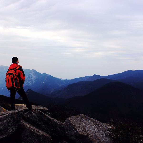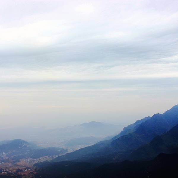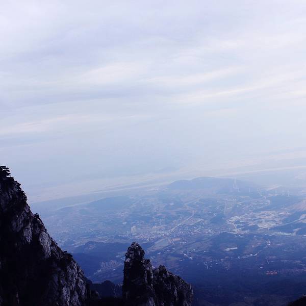 山高人为峰,登五老峰览鄱阳胜景 第三天的目的地五老峰,乘坐景区观光车到达大门口。门口的老大爷要我们签字、电话号码,严禁吸烟,大爷说:“今天(周日)人少多了,昨天(周六)还来了2000多人,进去不能抽烟啊!” 果然,上山的路上,前面看不到人,后面走着走着,一个人都看不到了,上山路照样一眼望不到头,卯足劲儿向上,来到第一峰,无限欣喜。果然五老峰风光无限好,名不虚传。云雾缭绕,就像一副山水画。艺术灵感来源于生活,中国的泼墨山水源头即来源于此。不需要P图,不需要做效果,天生万物,造物主就是艺术家。有4、5人拉着绳索攀岩在悬崖峭壁上采摘野生灵芝、木耳、佛手…… 3个来自安徽的菇凉买了一只灵芝,两只佛手。 “莫不是这群人故意拉着绳子下悬崖,然后摆出一副采摘野生灵芝的模样,弄些不知哪儿产的药材,合伙做戏,给游客一种捡到宝的感觉!” 采药的人说,你们可以拍药材,不要拍人,我们这行当很忌讳拍人的。(悬崖上面讨生活,一不小心,可能就葬身山底了)大条哥钟爱第一峰、第三峰,第一峰给了我们惊艳和惊喜;第三峰给了我们愈发前行的动力。好像大自然安排好了这部电影的顺序,动静结合,有高有低,高潮总是藏在最后,让你继续向前。 第一峰至第四峰基本同处一座山上,略微的高低起伏,第五峰却是在山谷的对面——眼看近在咫尺,却要下到山地再走上最高处。无限风光在险峰,说的就是这样,没有任何障碍物遮挡,鄱阳湖就在云雾缭绕之中,零星散布的村落、房子,整个浔阳尽收眼底。这里,必须来一个高声呐喊——