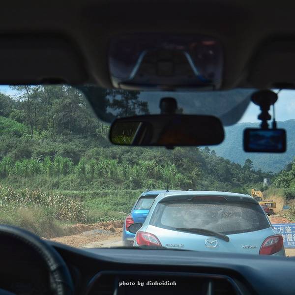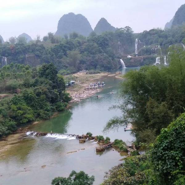 背后的风景居然那么美,要是没有这个拦水坝和电线,那真的就是一幅山水画了~跟拍小助理走的小栈道- 【百色大王岭漂流】