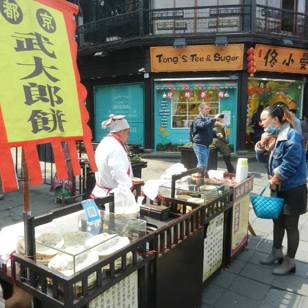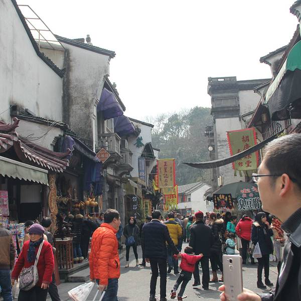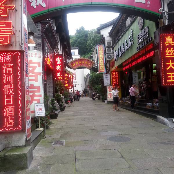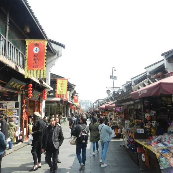 整条步行街东西向从一头走到另一头估计1公里都不到,但是人很多。里面主要是各式各样的小吃、特产。商业气息太浓,属于经典的景区式小吃、特产,也就是味道普通、价格偏高。卖小饰品的也很多,这些是最没意思的了,哪里都能买到的东西非要到这里景区来买。小吃有个比较特别的是街上有个叫卖武大郎烧饼的(打扮很像),但也是卖个噱头,烧饼好难吃。虽然小吃店大部分都不尽人意,但是餐馆还是有很不错的。有家叫御乐堂的杭州菜餐馆,环境优美、味道可口、消费也不算贵。能尝到很不错的东坡肉和龙井茶。