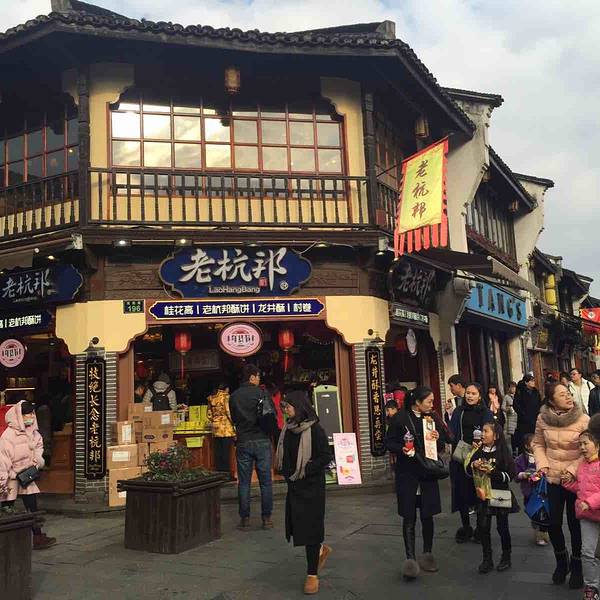 地址:杭州市上城区河坊街商圈走进清河坊,漫步在青砖路面,两边是明清风格的建筑、飞翘的屋檐、镂空的窗格、身着古老服装的店员……走在这条街上,你会觉得忽然融入了过去的岁月。从古代到现代,我的二次造访也时隔多年,你依旧是如此繁华。百年老店是清河坊人最多的地方。状元馆、荣宝斋、雅风堂、回春堂、胡庆余堂等,还有很多老字号保持着传统的风格,杭州的传统小吃、精致的雕刻、丝绸、手工制品等。虽然这是一条老街,但如今已经成了时尚男女流连的地方,衣着光鲜的年轻人也和沉稳的中老年人一样,热衷于这里的茶楼小馆,迷恋这里的清茶、藕粉、绿豆汤、麦芽糖、糖桂花,还有特色的各类点心。漫步在清河坊的街道上,远远地就能看到马路中间有一个木制的亭子,上面的篇额上刻着忠义亭三个字。亭内的雕像非常精致,表情逼真,一脸的浩然正气。古街上时常能发现一些雕刻着古老字样的石碑,不知经历了多少年的岁月洗刷。清河坊有很多富有文化底蕴的美食,在售卖的同时,也有不少制作表演。葱包桧是一道不得不品尝的杭州美食~在吃美食之余,不妨采购一些特色商品作为伴手礼。