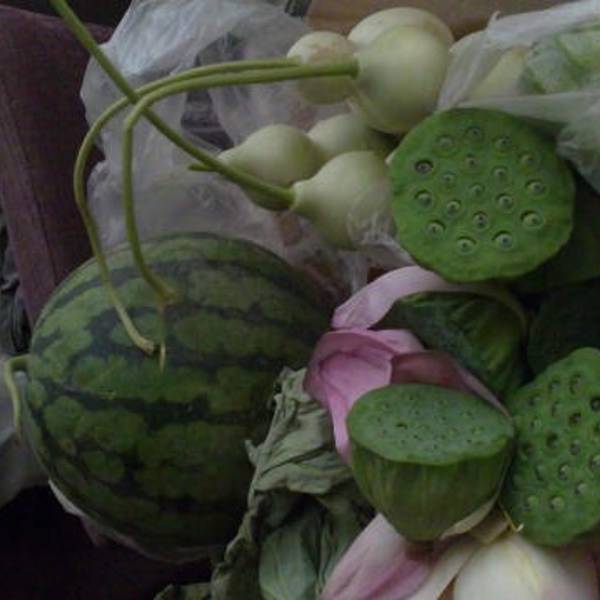 可以亲手在采摘的莲蓬。坐着铁皮小船,荡在荷花中,友情提示,蚊子超级多,我买了3瓶蚊不叮全忘在车上了。后果可想而知。可以在渔船上吃荷花宴:用荷页蒸的鲤鱼,辣椒炒蜗牛,很Q,炸荷花(面糊裹着荷花瓣炸) 展开