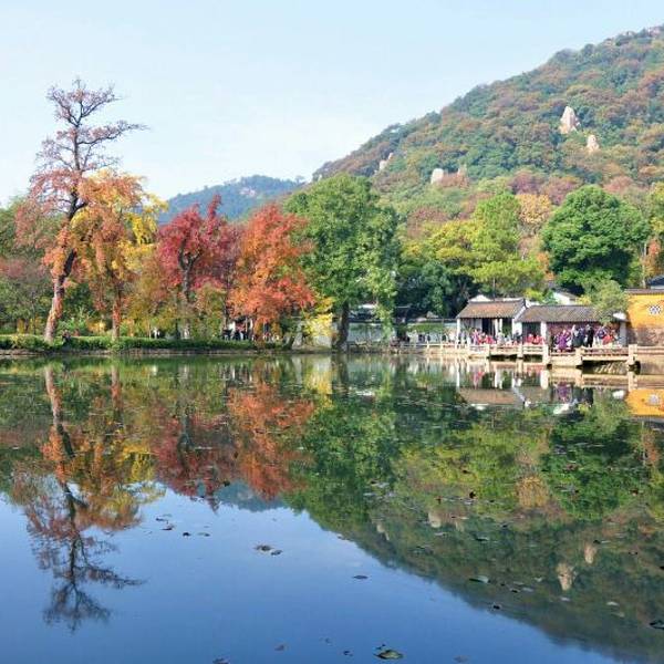 ✔️山麓有成片枫林,层林尽染称“万丈红区”。天平山的红枫,学名枫香,叶呈三角状,由于树龄不同,地势不同,长势有强有弱,其叶的色彩变化有先有后。在一棵树的大小枝叶上呈现出嫩黄、橙红、深红等自然景观,似如鲜花争艳,为树冠之花,人称“五彩枫”。🍁总体来说秋季来天平山是真的超级棒,不仅可以好好的感受枫叶的美,更重要的则是让你有种进入幻境的错觉。