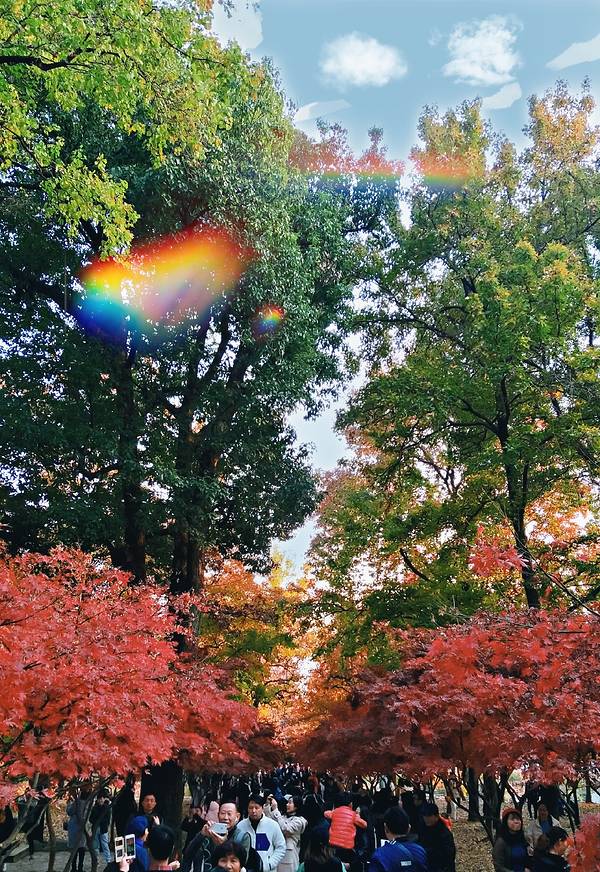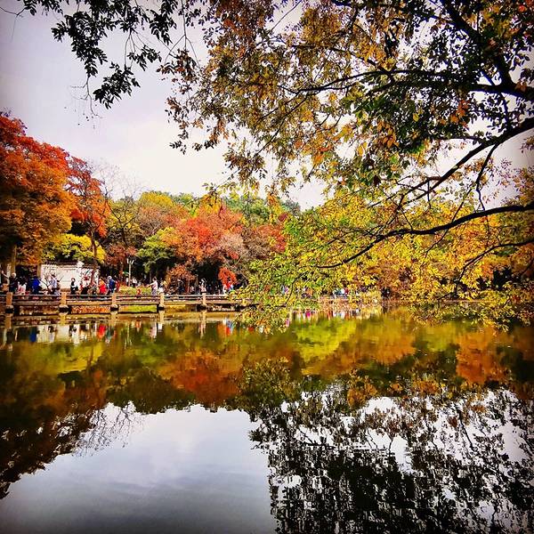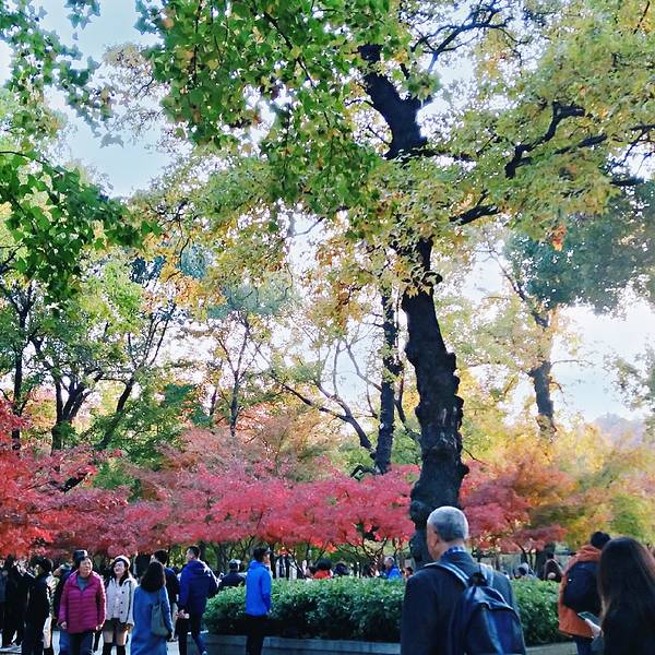 去的时间比较晚,临近中午,大批人马陆续过去,门口都放了好几个流动卫生间,很脏的那种,可想而知。跟着入院,看到落英缤纷的没有,基本就是各种颜色的落叶,银杏还有枫叶等落在地上,加上湖面的倒影,稍微用一下滤镜,出片还是有点感觉的。如果日本没时间去,就近错峰来一个也还可。