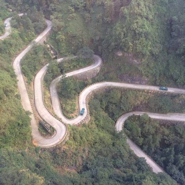 玻璃栈道位于天门山内。要体验这刺激无比的栈道,首先要先登上天门山。上山的方式有两种,公路和缆车。可以选择公路上山缆车下山,也可以选择缆车上山公路下山。因上山的缆车排队人太多,预计要等3个小时,所以只能选择公路,一听要坐车上山,一开始还有些许失落,没想到,不管是这公路还是缆车,名号跟气势都非同小可。