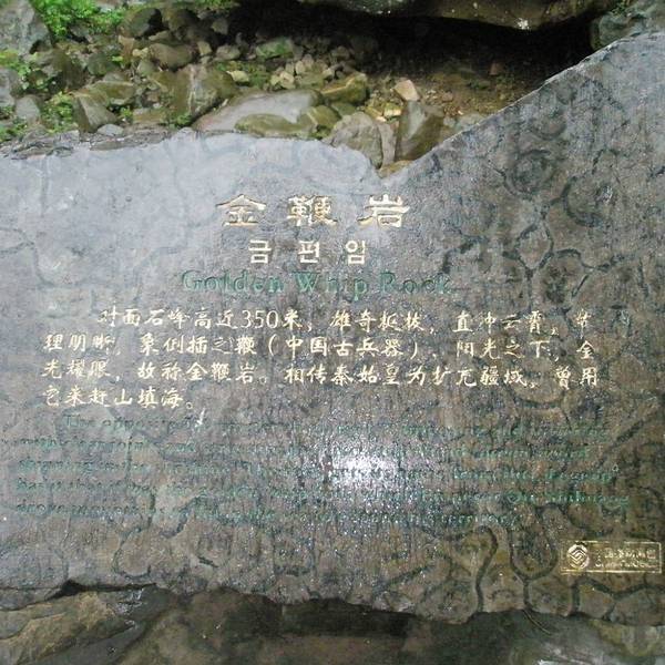 金鞭溪风景区是张家界的黄金旅游区,全长5700米,溪水发源于土地垭,从张家界林场场部到水绕四门,蜿转曲折,幽静异常,随山而移,穿行在峰峦幽谷云间,迤逦延伸于鸟语花香之中。因溪水流经金鞭岩而得名。金鞭溪全长6.5公里,自西向东贯通森林公园,两岸奇峰屏列,风光如画,嬉戏的鸟兽、古奇的树木、悠然的游鱼、景色显得异常幽静。