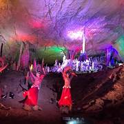 黄龙洞位于索溪峪自然保护区东部,有“地下迷宫”之美称。石乳、石柱、石笋等如水晶玉石,琳琅满目。现已探明洞底总面积10万平方米;洞中有洞、洞中有山、山中有洞、洞中有河。黄龙洞大型娱乐场所黄龙洞剧场可同时满足900人观看张家界民族艺术表演,整个节目采用国际顶尖的设备,通过现代高科技手段,向世人全新演绎神秘、古老、悠久的大湘西民俗文化。