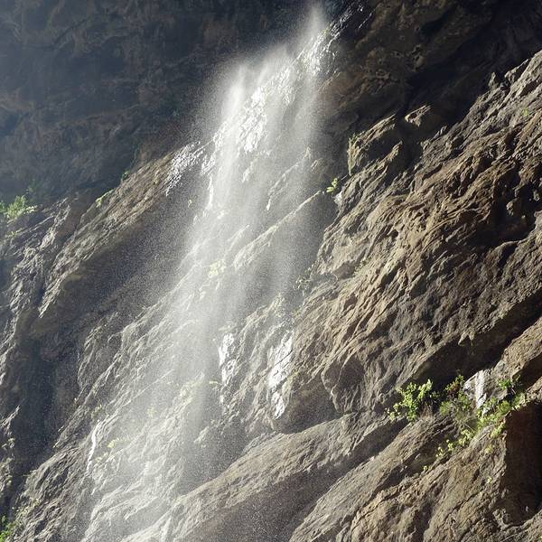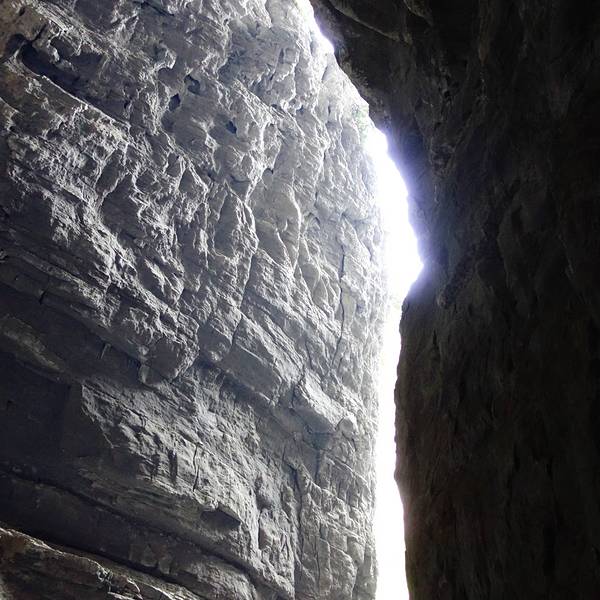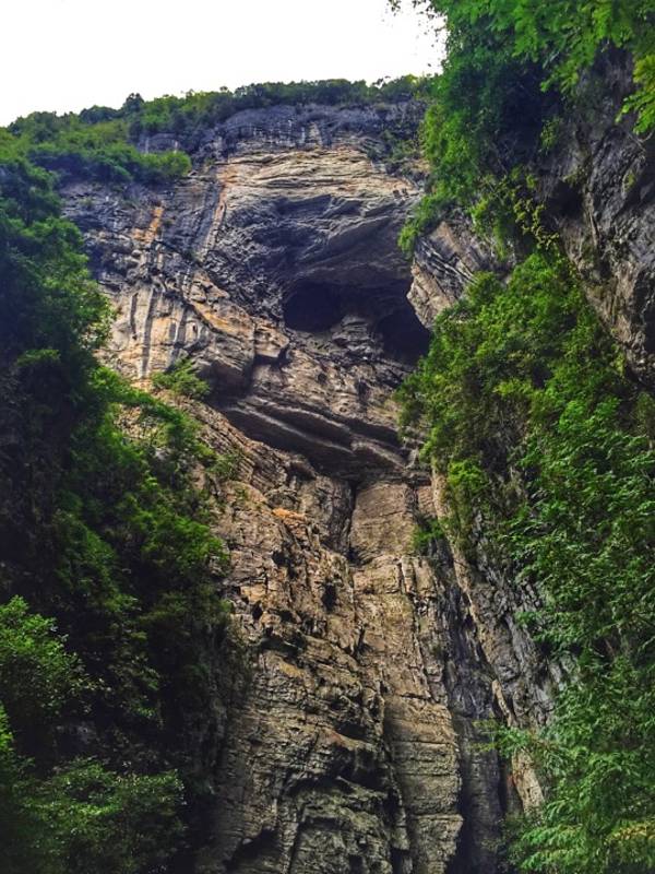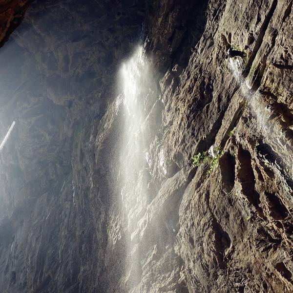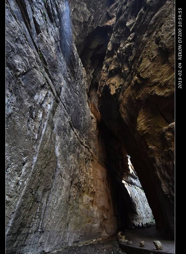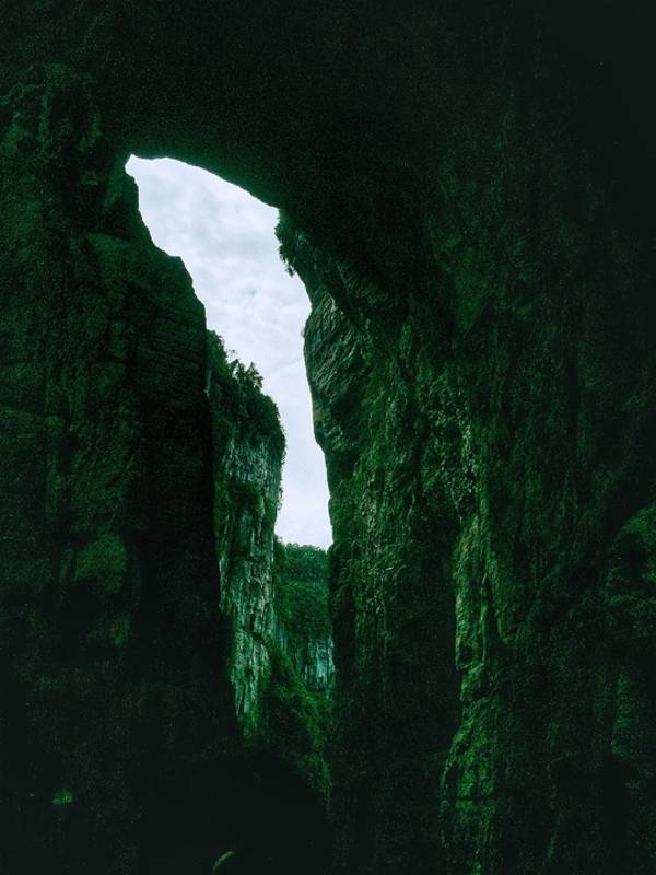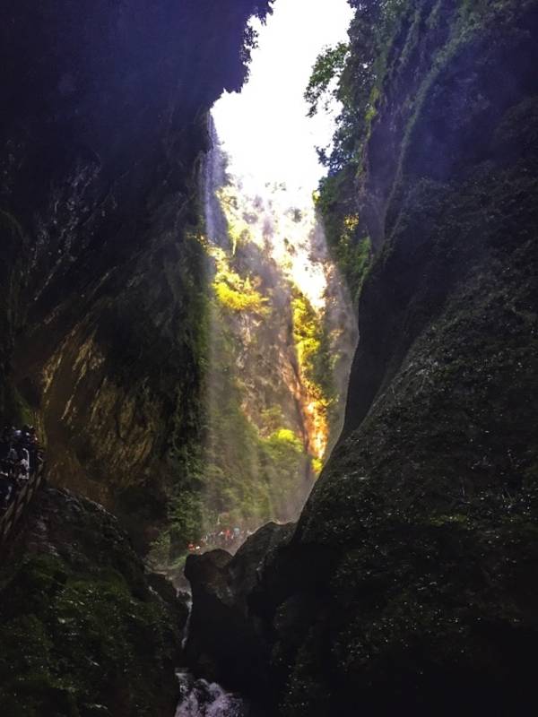到达坑底仰望四周,时而似雄鹰、时而似青龙,一线泉飞流而下,感叹这么壮丽的奇观竟然藏匿于地下,谦逊内敛又不失遒劲豪壮。