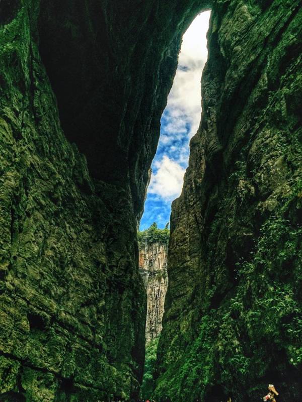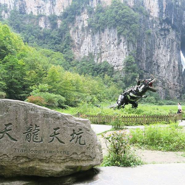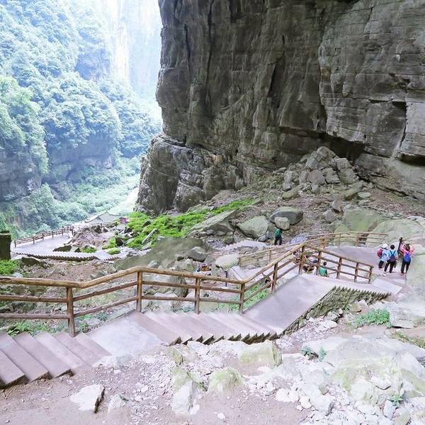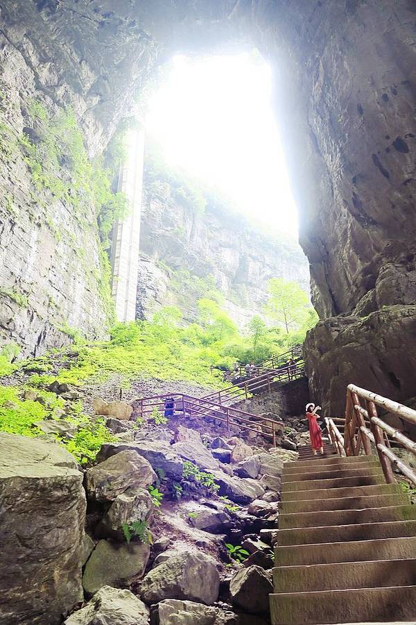 到达景区会先乘坐一部很高很高的电梯到达天坑坑底开启奇妙的旅程。因为景区内单方向游览,不走回头路,所以不用担心会走丢。这里是拍摄《满城尽带黄金甲》和《变形金刚4》的外景地,景色自然差不了,空气清新湿润,但最好选择淡季前往,旅行团也会少一些,才更能领略到其中的美妙。