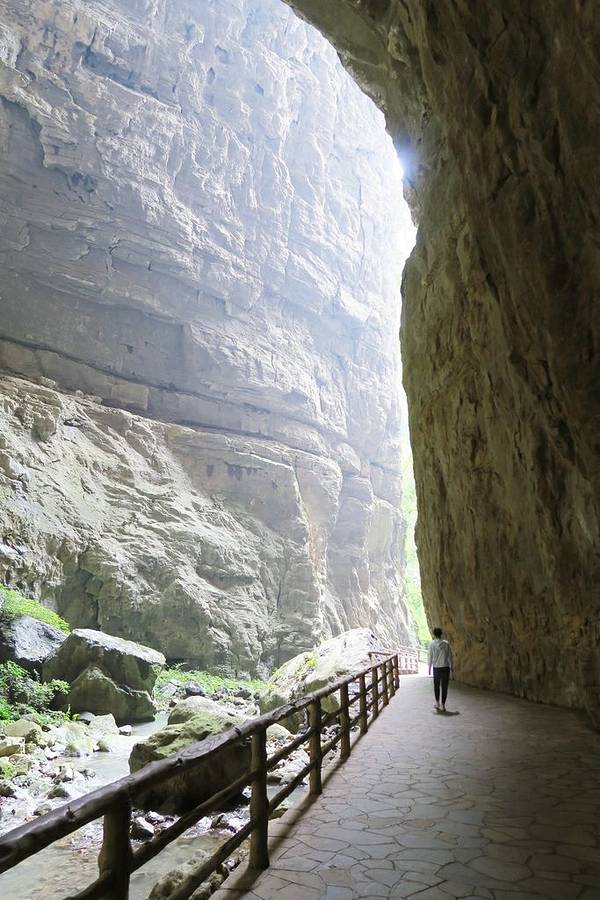 只需沿着景区安排好的道路一条线便可走到景区出口,全程大概需2个小时,建议把时间安排的宽裕些。到了天生三桥的出口,有摆渡车在此等候(15元/人),可乘车前往下一景区—龙水峡地缝,当然也可步行前往,要走一段上山路,需要20分钟左右,到达龙水峡地缝景区门口(再次购票,115/人),继续下一段美妙的旅程……