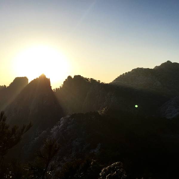 日落——光明顶,虽然很多地方都说排云楼是看日落的理想地方。但是我觉得那位置比较远也比较难找,还不如光明顶大众化突出易找景色还不错。