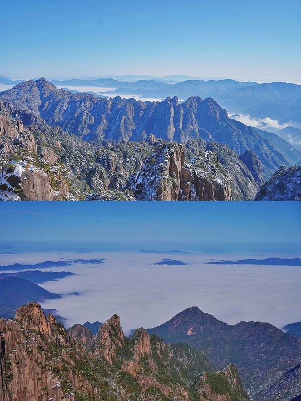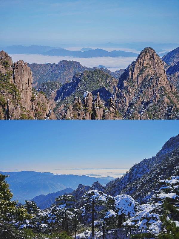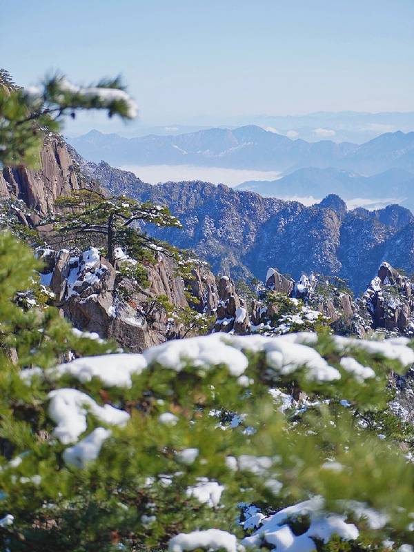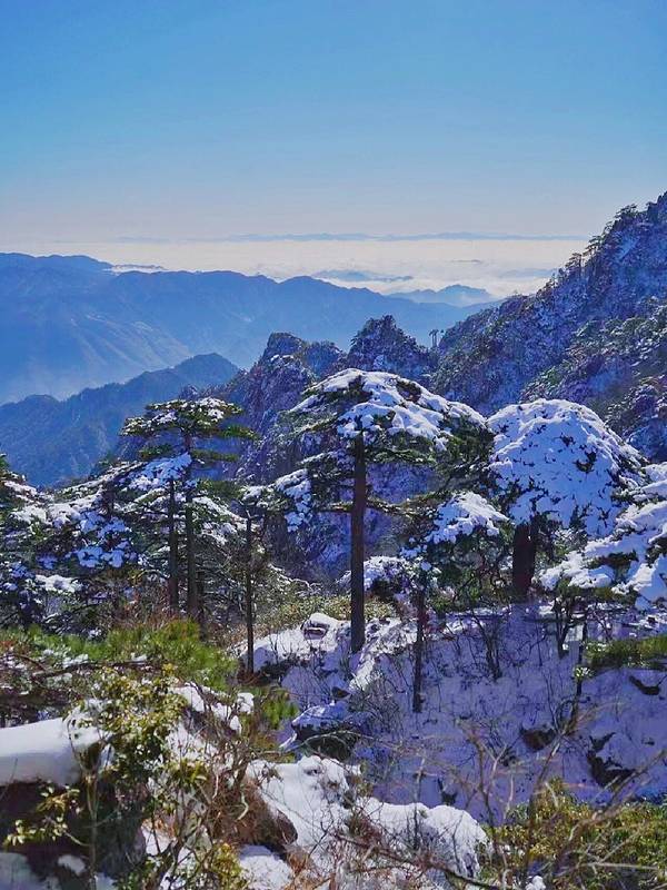 ❤冬日的黄山像是与世隔绝的琉璃世界。雪后初晴,千山万壑身披银装,雾凇冰挂晶莹剔透。每年11月到次年2月,都是黄山的最佳赏雪季。