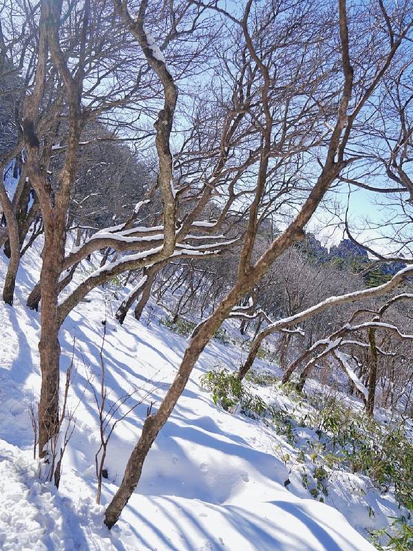 3⃣️雪景需要一点运气buff在的,自己撞大运,看到大雪压劲松和云海叠加的壮观景色,但因为是石板路,雪被压踩之后变得非常滑,鞋子不防滑的可以买个冰爪穿一下,尽量不要在阴天下雪的时候去爬,危险一且阴天啥也看不见,出行前看天气预报选晴天日子