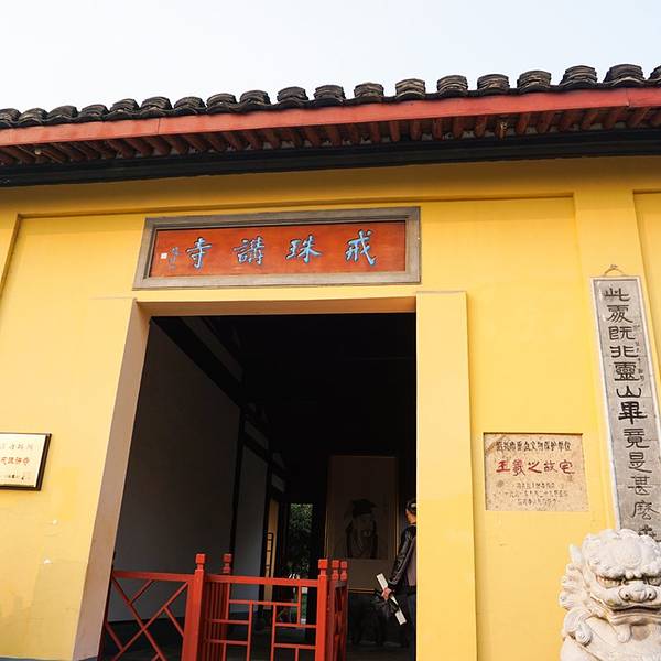 戒珠寺,这是我进入书圣故里景区,看到的第一个小景点 据说,这里本是书圣王羲之的故居 但现在已经...戒珠寺,这是我进入书圣故里景区,看到的第一个小景点 据说,这里本是书圣王羲之的故居 但现在已经不再只是王羲之的故居了 变成了一个明黄色墙面的寺庙 坐标:蕺山南麓西街72号 环境:就一个故居的规格来看这...戒珠寺,这是我进入书圣故里景区,看到的第一个小景点 据说,这里本是书圣王羲之的故居 但现在已经不再只是王羲之的故居了 变成了一个明黄色墙面的寺庙 坐标:蕺山南麓西街72号 环境:就一个故居的规格来看这个寺庙,还算可以了,进入以立马可以看到大雄宝殿,穿过走进去是王羲之的书法拓本。 关于戒珠寺的缘由:这是王羲之为了纪念被自己误会的老僧而修建的寺庙,王羲之误会老僧有了他的宝珠,实则是家里的白鹅吞了珠子,知道真相的王羲之悔憾不已,改建寺庙以后还亲题《戒珠讲寺》,并且从此不再玩弄宝珠。 展开