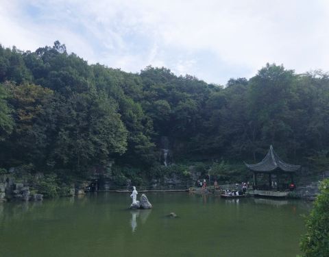 陶祖圣境由原来的慕蠡洞扩建而成,那的钟乳石、漫山的竹林、范蠡陶坊制作陶器是景区的三大卖点,根据范蠡、西施的爱情传说建造的人文景点则随处可见。夏日这里的竹林遮挡了烈日,洞内又很凉快,来避暑也不错。 景点位于宜兴市区西南28公里的金塘山中,距宜兴竹海风景区仅3站路,掩盖在“宜兴三洞”善卷洞、张公洞、灵谷洞的光芒下,这里的游人不是很多。 景区北边的正大门仿造古代城门的样子,同时也是范蠡文化陈列馆,里面图文介绍了范蠡的生平。进门后,经过范蠡广场上的范蠡塑像,便到达慕蠡洞出口,一潭碧水中立着西施塑像,站在观瀑亭,可以看见洞口岩壁上挂下的人工瀑布。慕蠡洞是景区精髓,出口在大门这,入口却要翻一座山才能到达,山不算难爬,沿路有很多小景点,赶时间的游客需要加紧脚步。 顺着环山游道向南到三角形的范竹亭,再往前的一线天颇有趣味,太湖石林组成了仅容一人通过的缝隙。接着经仙鹤楼(望西亭)、元宝石等景点后来到陶祖圣境-竹林长廊,走木栈道、过吊桥,抬头是青翠可爱的竹林,金镶玉竹、罗汉竹、紫竹……品种繁多,往下能看到低矮的太湖石林,带小孩的游客还可以去竹林里的生态游乐园玩玩秋千、滑梯。 继续向南到千龟寿池,池中有大龟驮小龟的雕塑。池子的西侧便是范蠡陶坊,可以凭票领取一份陶土,然后利用桌上的模子制作一件属于自己的陶器。千龟寿池东侧是馒头状的范蠡古窑,以及财神堂,没什么看点。 最后进入千龟寿池北侧的慕蠡洞,比起张公洞的宏伟,它因狭长而显得曲径通幽。洞内游程约900米(含水路),能见到千姿百态的钟乳石,有的像迎客松,有的像灵值仙草,有的像孔雀开屏,还有观美桥、西施井、望夫桥这样以范蠡、西施传说命名的景观。记得留意头顶,有很多凝结成水滴正要滴落状态的钟乳石,惟妙惟肖。快到洞口处有一段水路,约150米,可以坐游船,也可以步行出洞。