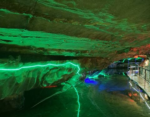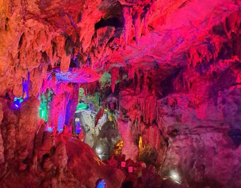 有山有湖泊,山间有洞口,进入洞口是水洞,沿着洞里的道路行走,灯光效果下的石灰岩风光很是不错宜兴有个陶祖圣境,这个景区不大,环境不错!有山有湖泊,山间有洞口,进入洞口是水洞,沿着洞里的道路行走,灯光效果下的石灰岩风光很是不错!