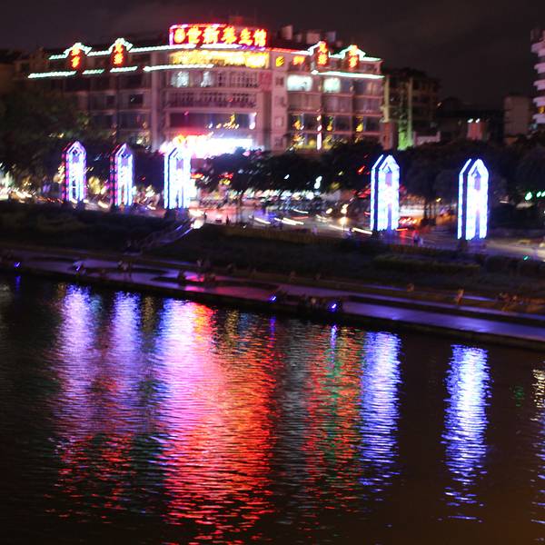 金骆驼 两江四湖是桂林市内夜景最美的地方了,两江四湖是指由漓江、桃花江、榕湖、杉湖、桂湖和木龙湖所构成...两江四湖是桂林市内夜景最美的地方了,两江四湖是指由漓江、桃花江、榕湖、杉湖、桂湖和木龙湖所构成的桂林环城水系,整个环绕桂林市内一圈。可以选择坐船游览也可以步行游览,坐船的话,一圈下来大概一个多小时...两江四湖是桂林市内夜景最美的地方了,两江四湖是指由漓江、桃花江、榕湖、杉湖、桂湖和木龙湖所构成的桂林环城水系,整个环绕桂林市内一圈。可以选择坐船游览也可以步行游览,坐船的话,一圈下来大概一个多小时,不到两个小时,一般都会选择在解放桥上船,然后文昌桥下,价钱根据你在哪里预定了,一般客栈预定的话,夜间游船是170,白天游船是70,看着差价就知道夜间比白天好看多了吧,而且中秋节马上象山会弄灯节,这样看更好看了,这样是最佳的游览路线,建议七点多到八点去坐游船,这样下船后可以直接去正阳步行街和文化宫路那边逛街,还可以去正阳步行街的小吃街里面吃东西,很多小吃,米粉不建议去那里吃,米粉正常的价格也就是五块钱以内,步行街的米粉能卖到15块多。正阳步行街小吃的话,有很多其实和旅游景区的一些小吃差不太多,所以,可以先看看团购之类的。另一种方式就是走路去两江四湖,当然走路的话,一般都是日月双塔看两江四湖,日月双塔是两江四湖最独特的景色了,附近的逛街吃饭的地方相当多,所以完全不用担心吃饭的问题,附近有一个漓江瀑布大酒店,逢周五周六都会有瀑布表演,八点半到八点四十五,还是要提前去看的,人还是很多的。而且出去一定要注意自己的财务,游客多的地方,小偷也特别多,我是亲眼看见了小偷就拉开包偷东西的。当然日月双塔也是可以上去的,但是没什么必要上去,而且夜景的话,日月双塔是不开放的。这是解放桥码头 展开