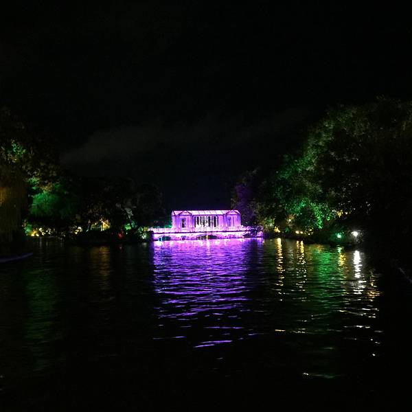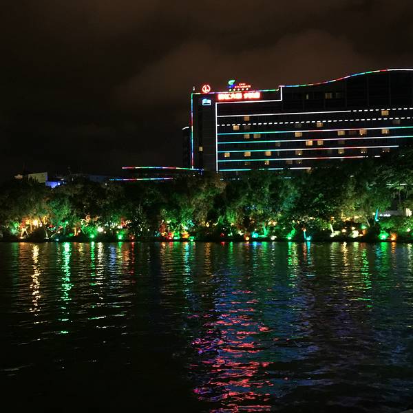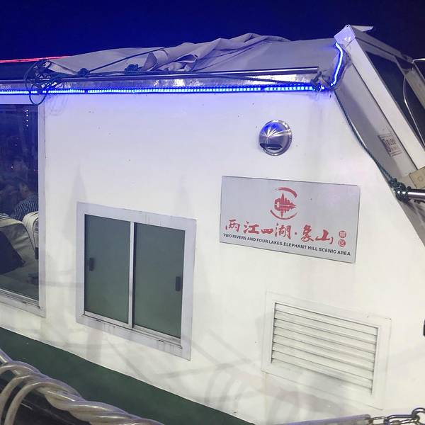 Tips: 夜游两江四湖的费用为210元一人,乘坐的是豪华游船,可以在网上购买,价格为185一人,便宜25元。在出游当天的下午,会有工作人员打电话通知你,和你确认游览的时间,然后以短信形式通知你取票地点,取票的时候报姓名即可取票,游览两江四湖的码头要看你票上的出发地点。 展开