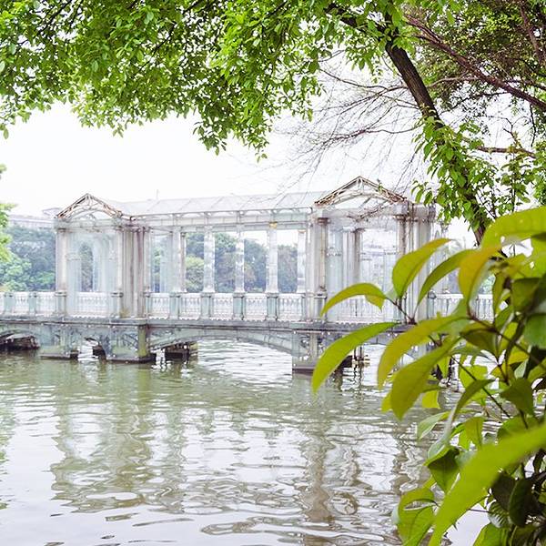 两江四湖景区就是桥多,各种桥,桥型采用中国著名桥梁-圆明圆天宝坞桥型,设计为人行并列双桥,桥长30米,单宽4米古榕双桥丽泽桥