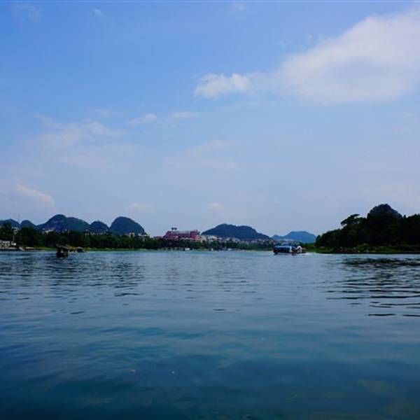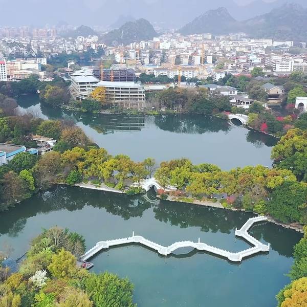 从两江机场坐机场大巴,20元/人,到终点站民航大厦下车,然后坐一站公交即可到...两江四湖已经成为桂林旅游的一张名片,我们是淡季去的,陆陆续续都看到很多夕阳红的旅游团,当地人没事也喜欢去散个步的地方。