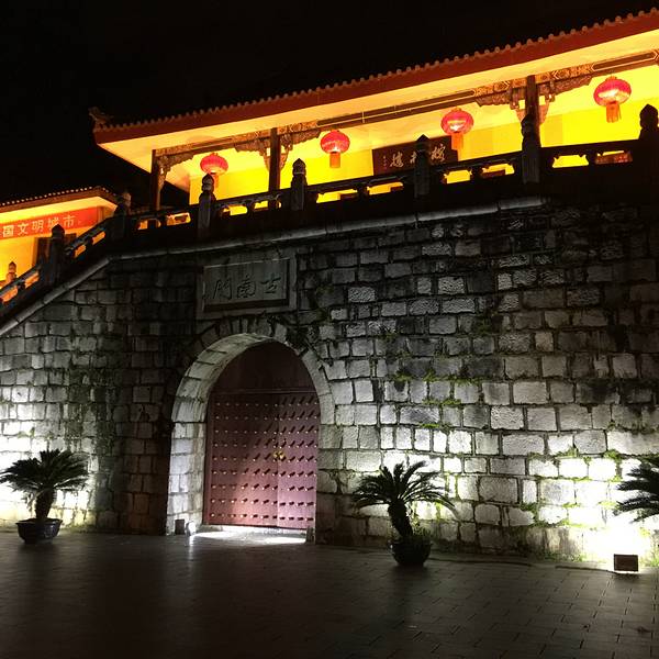 位于市区榕湖北岸。又名榕树门。据载为唐代名将李靖于武德四年(621)平定岭南后, 在桂林筑置城守新建, 距今正1300多年。古南门两江四湖景区古榕双桥
