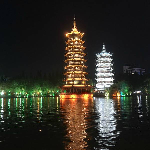 实用 公园旁边的圆球灯也吸引了不少瞩目。公园里也不少当地人跳广场舞、乘凉唠嗑,满分的市民气息去桂林之前没做什么攻略,在花满楼问了下老板就来两江四湖这边看看。打车过来很快就到,刚下车就被一群大妈围着推销,仗着人多我们跟大妈狂砍价,最终30块一个人拿下,不过已经是12年的物价了仅供参考。日月双塔...去桂林之前没做什么攻略,在花满楼问了下老板就来两江四湖这边看看。打车过来很快就到,刚下车就被一群大妈围着推销,仗着人多我们跟大妈狂砍价,最终30块一个人拿下,不过已经是12年的物价了仅供参考。日月双塔真的是大家来这都要拍照留念的标志性建筑,不能免俗。白天看起来平淡无奇,夜晚灯光亮起,才散发起神秘的光辉。公园旁边的圆球灯也吸引了不少瞩目。公园里也不少当地人跳广场舞、乘凉唠嗑,满分的市民气息。