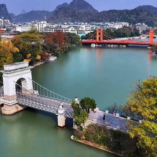 是市区通往西山景区、桃花江景区和芦笛岩景区的要道。长125米,宽25.5米,是中国第一座自锚式悬索桥。此桥设计思想源于美国著名的金门大桥。丽泽桥榕溪桥迎宾桥