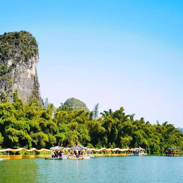 这种才是推荐的游玩方式,几个朋友包一个竹筏,随兴地玩,还不贵,只要砍价功夫够好,别跟着一群人就在船上单调地看风景,那多没意思。 展开