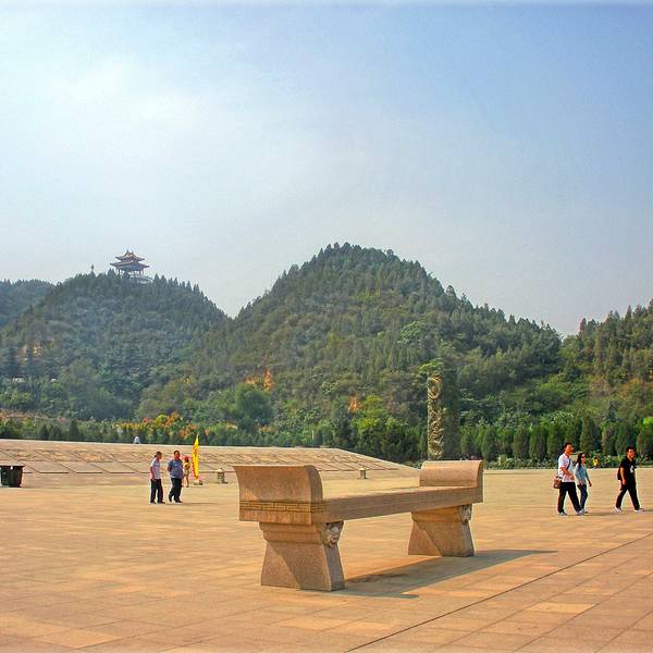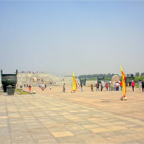 炎黄二帝塑像,位于黄河风景名胜区内,塑像前是十分宽广的广场炎黄二帝塑像,位于黄河风景名胜区内,塑像前是十分宽广的广场。塑像屹立于山颠,宏大雄伟,气势非凡,像是望着黄河从古流到今。