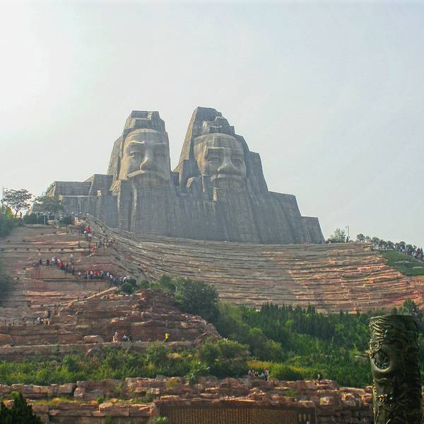 整个雕塑比美国自由女神像高8米,比俄罗斯的母亲像高2米,是世界最高的雕塑之一。合影留念炎黄二帝巨型塑像,整个雕塑面朝黄河、左边是黄帝,右边是炎帝,炎帝比黄帝高一些。雕塑的右下方是范曾为“炎黄二帝”塑像书写的长达485字长33米,宽3.3米《炎黄赋》碑刻。炎黄二帝巨型塑像由两部分组成,上部头...炎黄二帝巨型塑像,整个雕塑面朝黄河、左边是黄帝,右边是炎帝,炎帝比黄帝高一些。雕塑的右下方是范曾为“炎黄二帝”塑像书写的长达485字长33米,宽3.3米《炎黄赋》碑刻。炎黄二帝巨型塑像由两部分组成,上部头胸采用花岗石雕砌,下面以山体为身。整个雕塑比美国自由女神像高8米,比俄罗斯的母亲像高2米,是世界最高的雕塑之一。炎黄广场上面有一座圆形雕塑,根据太阳照射的方位,用指针的影子来计算出时间。合影留念 展开
