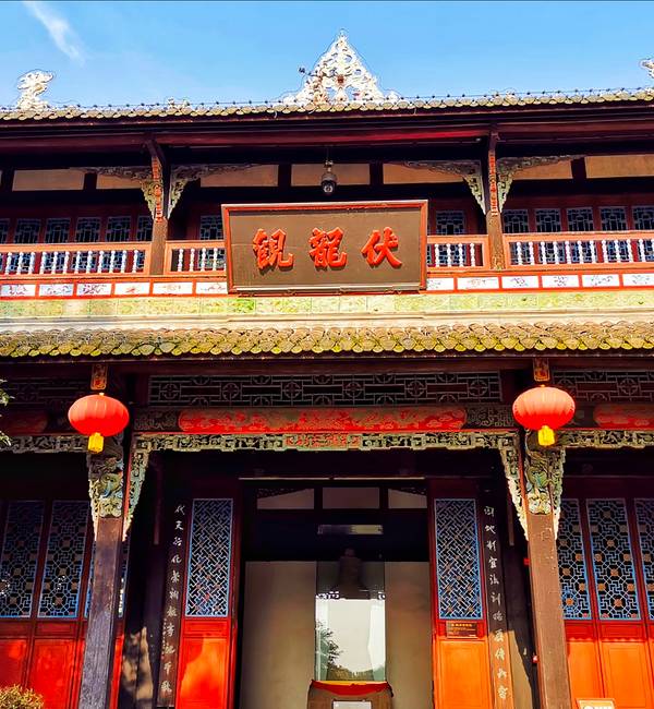 伏龙观位于离堆北端的最高处,奉祀战国时期修建都江堰的李冰父子。该观始建于晋代,原为纪念青成隐士的范贤馆。传说李冰父子治水时,曾降服江中的孽龙,锁在离堆下的伏...堰功道和清溪园的尽头,就是著名的伏龙观。