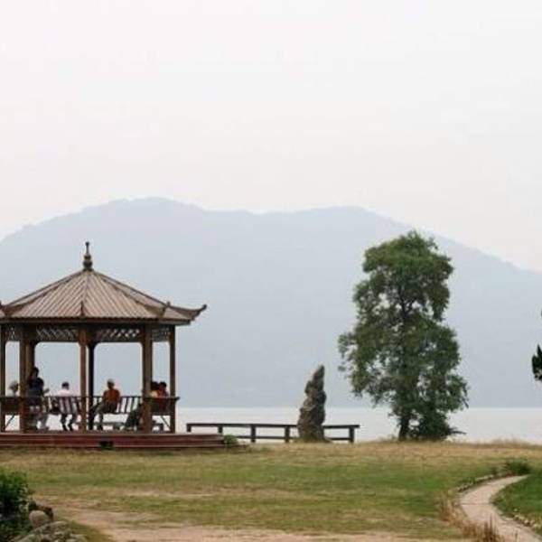落雁景区是东湖生态旅游风景区的核心景区,与东湖磨山风景区隔湖相望,但是请注意落雁景区与磨山景区旁边的东湖落雁岛并不是一个地方,在去之前一定要搞清楚方向,尤其是自驾设置导航的时候。由于落雁景区是武汉市非著名景区,其知名度远落后于东湖落雁岛,公交很少,只有513路公汽可以直接到景区站,大武汉目前正在修路,这里的道路坑坑洼洼,无论是公交还是自驾都是一件让人感觉很辛苦的事情。我本来是自驾去东湖落雁岛的,结果疏忽了“景区”和“岛”的区别而误入此处,心想既然来了何不一游?景区门口有一个很大的停车场,但是车很少,可以说停车位是十分充足,停车费6元不限时,景区的门票13元,也配得上这个非著名景区。落雁景区很大,包括化蝶园、赵氏花园、鹊桥相会、乌龙潭、坪沙落雁等一系列人文景观,景区里面郁郁葱葱,植被丰富,大部分都是南方特有的灌木,空气自然是很清新,很有氧的。景区紧邻东湖,可以在湖边遥看对面的磨山,虽没有东湖磨山的靓丽景色,但也自有一种野趣。我是下午到的,景区的面积很大,但是人却少的可怜,走了半天也没有看见一个人,里面幽静的有点可怕,而且景区内没有代步的交通工具,我想大概非常适合那些徒步、追求野趣的人了。景区附近基本上没有什么配套,景区里面有游客中心,里面仅有一些简单的基本服务。