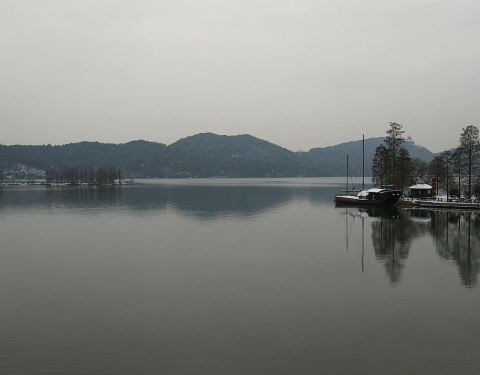 “东湖落雁景区”,位于湖北武汉市洪山区东湖风景区内,与东湖磨山景区隔湖相望,远山倒影,湖水如镜...