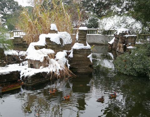 落雁景区位于武汉东湖东岸,是东湖风景名胜区的精华之一,这也就能够解释,为什么在东湖景区免费游玩之后,落雁岛仍需要收取30元(夜晚40)的门票了。去的交通也很便利,可以在市内乘坐401路、403路、643路公交车到鲁磨路梅园站下;也可以乘坐402路、413路、515路到东湖东路梅园站下,转乘落雁景区免费专线车直达落雁景区(半小时一趟)。景区的范围比较大,包含清河古桥、鹊桥相会、雁洲索桥、芦洲古渡、赵氏花园、古树奇观、雁栖坪沙、芦洲落雁等八大景观。一路前行,沿途风景如画,有些学生来这边搭帐篷,进行烧烤。情侣在拍婚纱照,还有在湖边垂钓的老人。但这里最佳的旅游季节其实是冬季,大批候鸟会前来越冬,特别是鸬鹚,会栖息在岛上的池杉上,十分壮观。这时可以租游船欣赏。