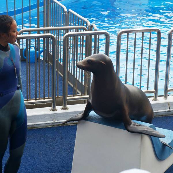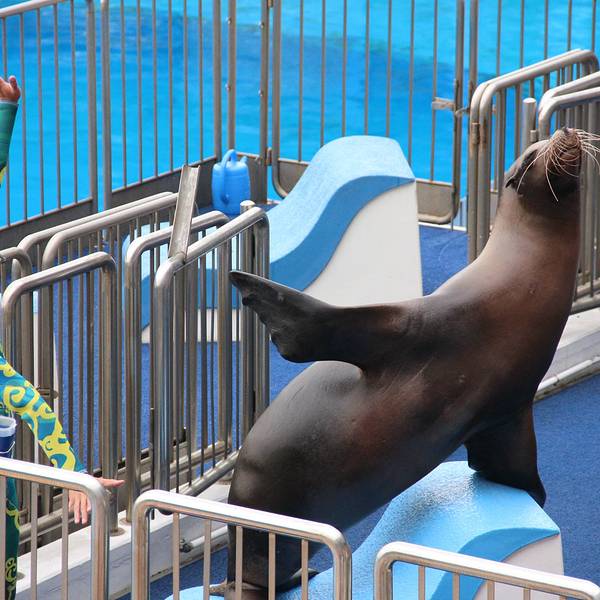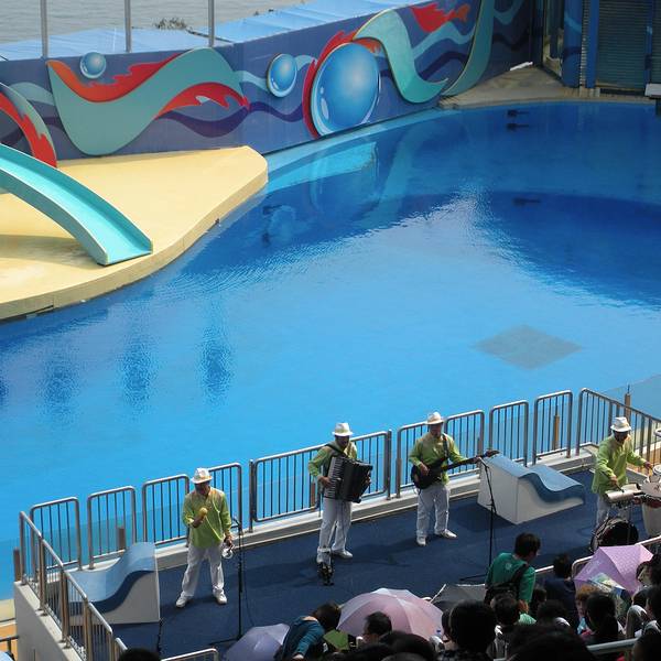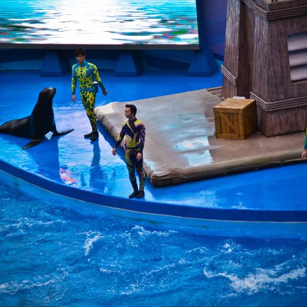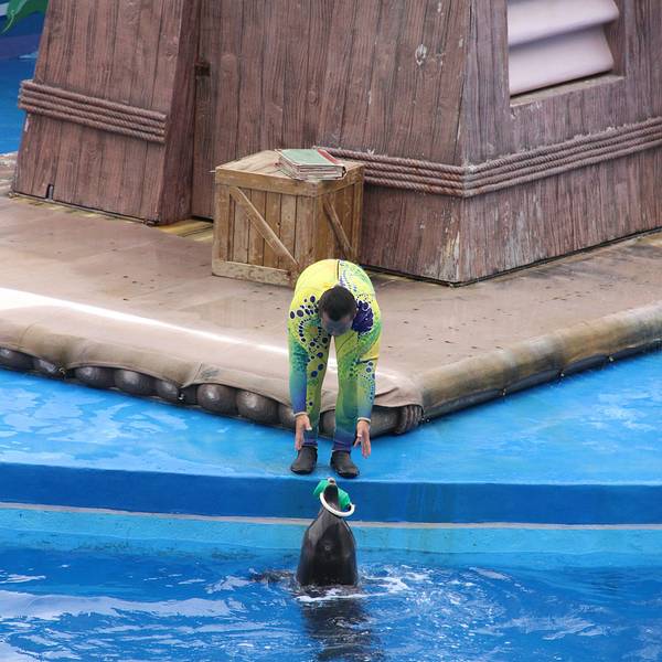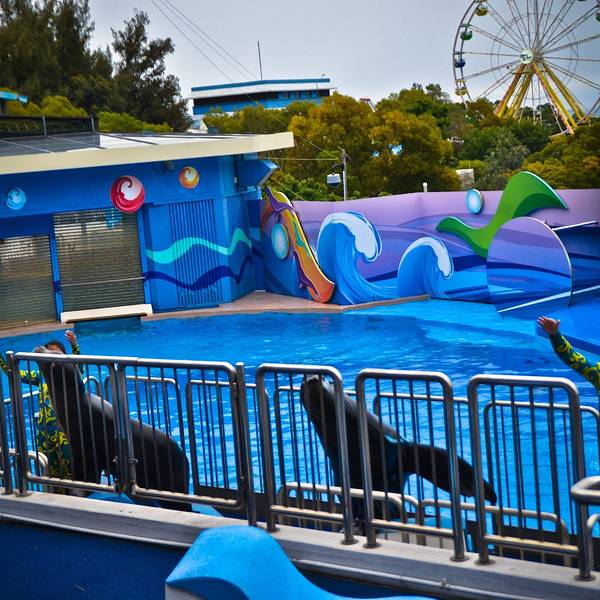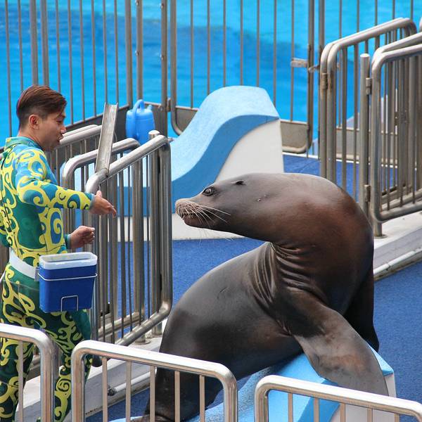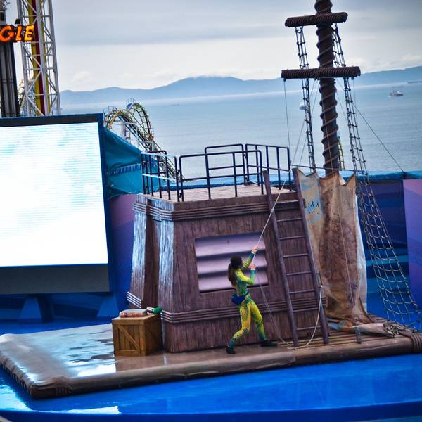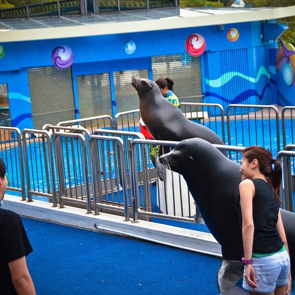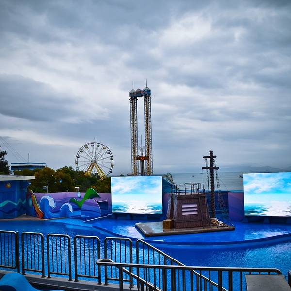 海洋剧场位于山上中央,能容纳4000名观众。剧场中央是一个巨大水池,有加州海狮和瓶鼻海豚进行精彩表演。入园时要看好当天演出时间,然后安排其余设施的时间。