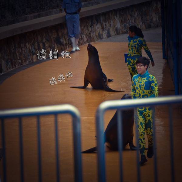 因为这又是一个老少皆宜的项目,所以人数自然不少,演出开始前半小时,剧场就只剩下两边距离较远的位置了。在肉哥的字典里,seal can clap hands,所以当他看到海狮时一直在拍手。大约是我和他都还不能准确分辨海狮和海豹,所以以为长这样的就是会拍手的海豹。
