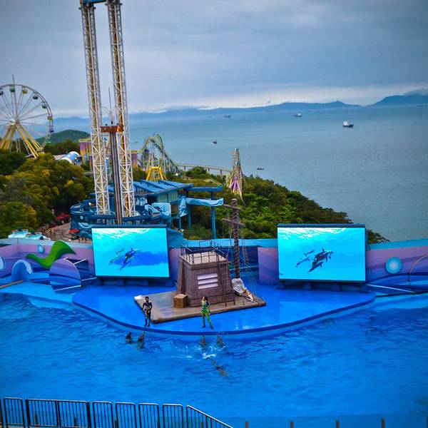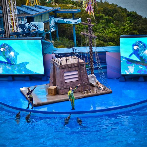 实用 在观众席可以看到各种惊悚的游乐设施,最厉害的当属20层加悬崖边上的的跳楼机了海洋剧场是海洋公园内最受欢迎的大型表演,可容纳3500名观众,每日都会有数场表演,包括有海狮、海豚等动物的表演,表演的时间在入园时领一份海洋公园地图,地图上会有当日的准确的表演时间,不用提早太久去占位...海洋剧场是海洋公园内最受欢迎的大型表演,可容纳3500名观众,每日都会有数场表演,包括有海狮、海豚等动物的表演,表演的时间在入园时领一份海洋公园地图,地图上会有当日的准确的表演时间,不用提早太久去占位置,暑假的时候提前20分钟就好,平时就更不用过早去了。海洋剧场是在海洋公园的山上,所以要计算好时间哦,在山下的朋友可以搭乘缆车或者海洋列车上山,再步行过去。我当时是看的中午12点这场,比较好的是几乎一大半的观众席都是阴凉,下午的场次就全都要晒太阳了。在观众席可以看到各种惊悚的游乐设施,最厉害的当属20层加悬崖边上的的跳楼机了。在等候的时候经常听到跳楼机那边传来的惨叫~“海洋伴我心”主要是把海豚海狮表演串联成一个保护海洋保护环境的故事。以前也在别的地方看过海豚表扬,和海洋公园的没什么大的区别,但是海洋公园注重保护海洋和海洋生物的宣传,不管是之前的等候的时间还是表演中,都一直在普及这些,必须赞一个。其实海豚们这样每天几场的表演队体力消耗是很大的,绝对的优秀员工。想要近距离接触海豚和海狮的可以提前在海洋公园的网站上提出申请,经过审核后会安排和海狮的现场互动哦。 展开