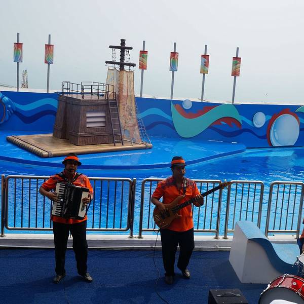 由海洋公园聪明可爱的海豚、海狮和一班训练员呈献一个关于梦想和海洋的故事。园内每天均有乐队在海洋伴我心表演前演奏,以娱乐游客。