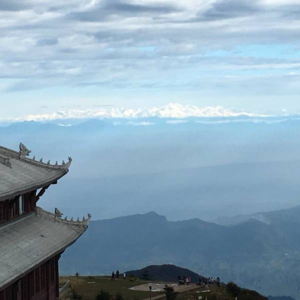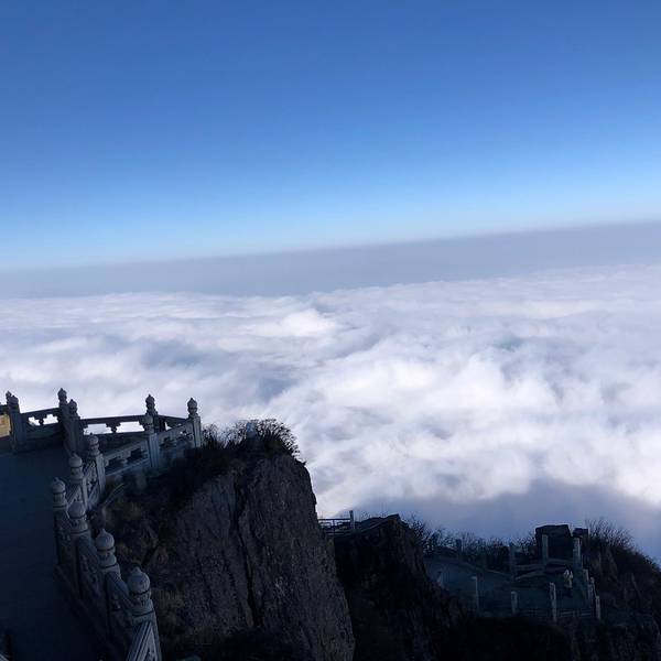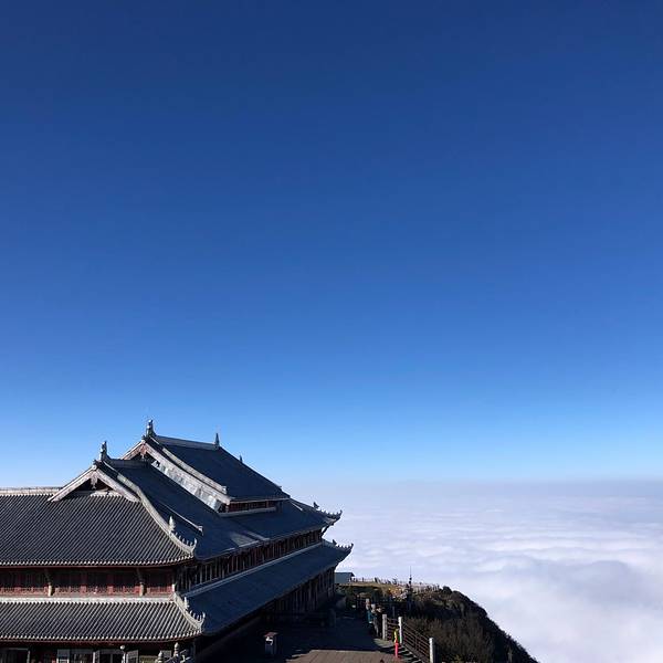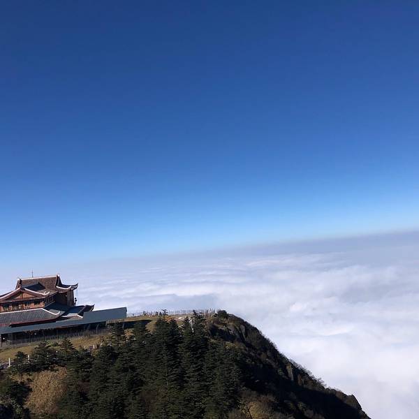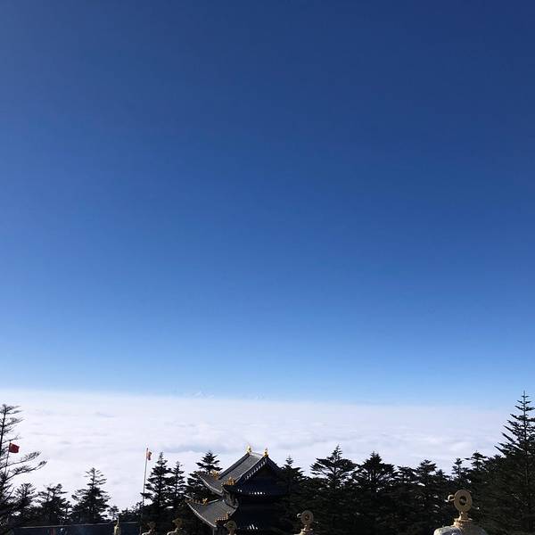 谁能想象的云海跳跃在金顶之上,跳跃犹如1飞翔在云端,远处的雪山你看不见但是你看见脚下的路是云雾缭绕的在这里真的是神仙过的生活