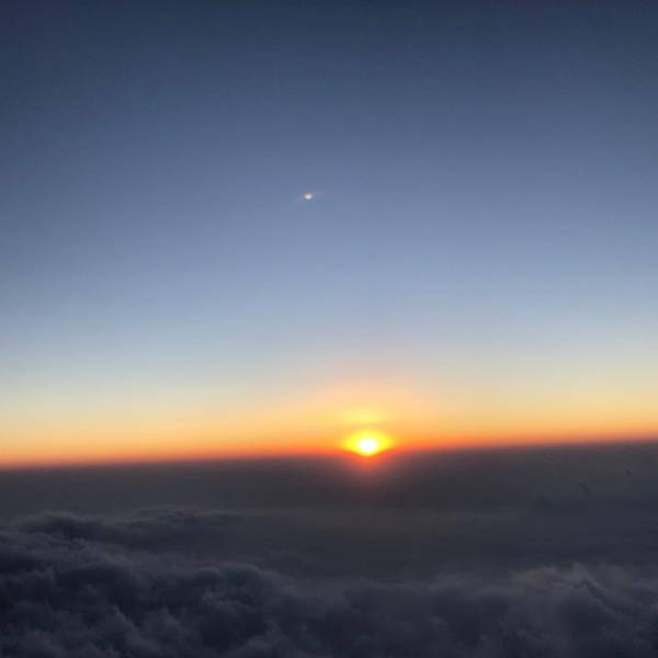 不知不觉,天空中的星星渐渐华丽褪去,只剩启明星在那里高高挂着。东方蓝灰的云层里透出一点光亮,天边慢慢出现一朵红云,仿佛告知大家一个重大仪式即将开始。金顶朝绝壁这边的栏杆站满了人,游客们都想找一个最佳位置观日出。时间仿佛静止了,大家都静静的等待,说话也是很轻声的说,似乎怕破坏了这份宁静。我拿出手机给老公电话让他起床看日出,信号非常不好,时有时无,两人就这么断断续续联系,他听不清楚我所在的位置在哪里,最后他站在舍身崖那里给我打电话时我看见他了,我冲他招手让他向上看,就在此时突然听到一声“出来了”,人群骚动起来,一阵欢呼声响起,只见灰蓝色的云里冒出半轮红日,光线柔和可以直视,慢慢的爬高了一点,整个圆形的能看清了,但还有两缕云带缠绕,后面一美女告诉我,等那两丝云带褪去,太阳就全部升起来了,我急急忙忙挤出人群想下去和老公汇合一起欣赏那一刹那,等我跑到那里一看,哪里有他,就在此时手机响了,他说你跑哪里去了,原来他也跑上去找我了。越是又急忙忙往上赶,两人终于在峨眉金顶披上金色阳光的瞬间汇合,圆了在峨眉牵手一起看日出日落的愿望!☺☺ 展开
