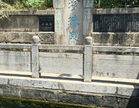 进去左拐几步,就到了一个用石块砌成的方池,方池不大,也就两米见方的样子,凭栏杆下看,半米深清澈见底的泉水,这里就是“珍珠泉”的泉眼,从这满溢出的泉水经暗道在远处一石刻龙嘴中喷涌而出,水势甚响,管理...