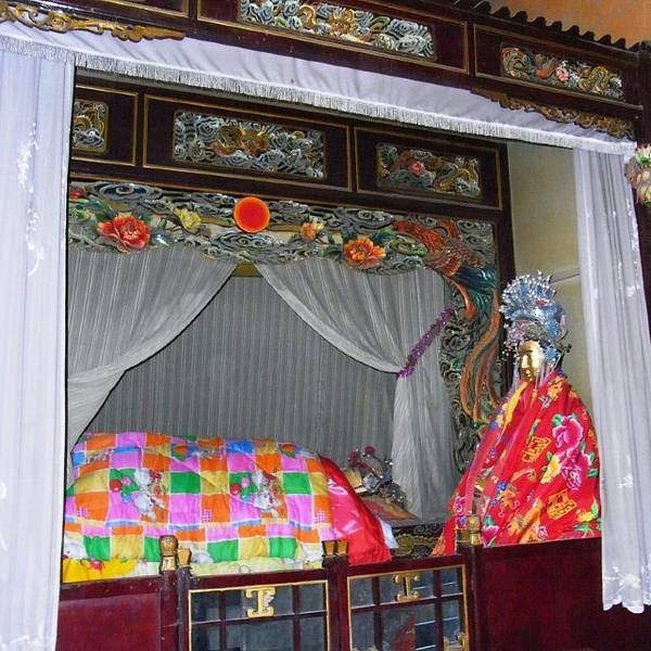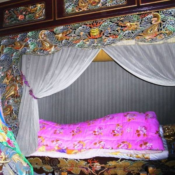 泥塑木雕睡在床上盖着被子,还是在殿背后的小屋里,真是感觉脊背发凉啊。