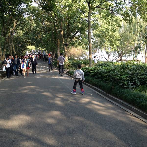 去走苏堤,一般会在南山路这边的口子入口,一直走到北山路口。也可以借个自行车,在苏堤上骑行。我们带着孩子还在苏堤上轮滑。