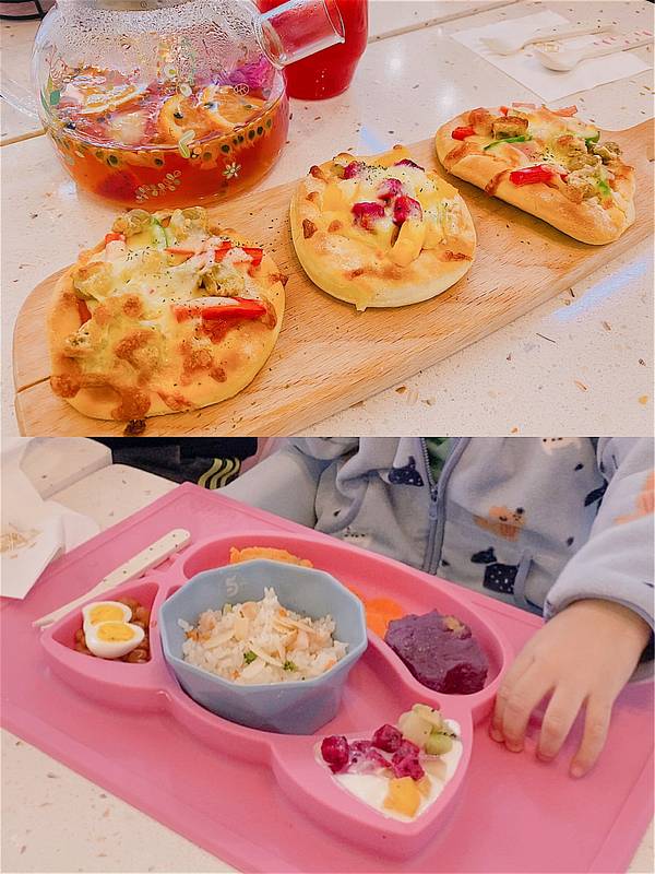 有专门针对营养搭配的儿童餐。鲜虾、南瓜、鹌鹑蛋、酸奶水果捞。色香味俱全。