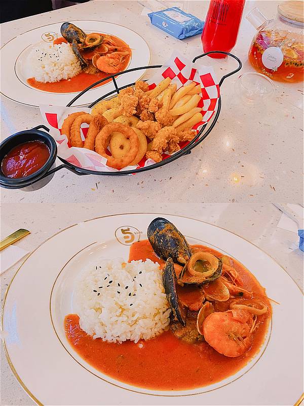小吃和主食品类也非常丰富,有牛排🥩、意面、海鲜饭、烤鸡、等。还有薯条拼盘、小披萨、甜品等。主要以西餐、简餐为主。