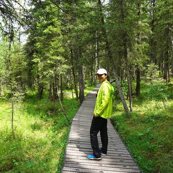 然后乘坐车间车去最顶上的观鱼台,有一千多步的阶梯,上去的时候举步艰难,但到达观鱼台,看到美丽的雪山以及眺望碧绿的喀纳斯湖,你会觉得一切的辛苦都值得了!有人说喀纳斯湖也就只是一个湖而已,的确只是一个湖畔,但你停下脚步,站在河岸眺望对岸的白桦林,晒着北疆的太阳,迎面吹来徐徐微风,顿时心中三千烦恼丝便烟消云散,你所想要的,就是好好享受大自然,亲近大自然。